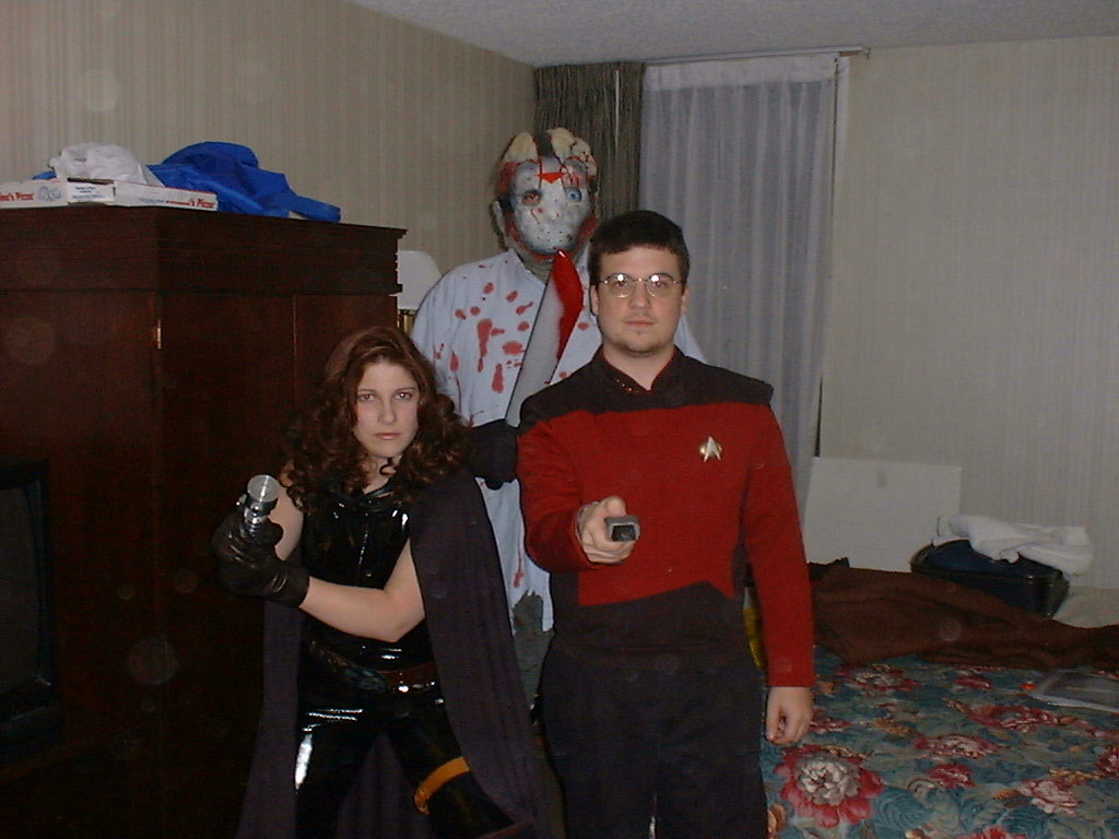 you can see, Michelle is Mara Jade of Star Wars fame, Joe is of course Jason, and I am a Starfleet Commander. |